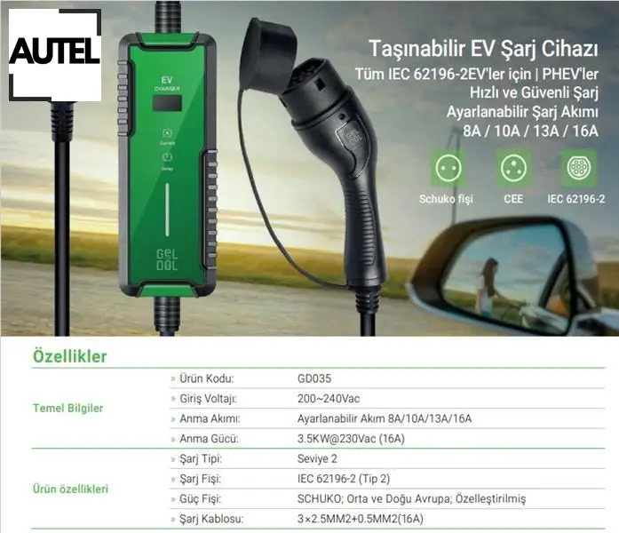 3.5 kw taşınabilir şarj cihazı autel