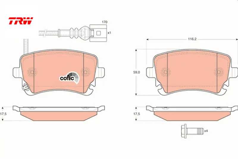 Arka balata transporter t5 t6 04 gdb1557 fişli trw 7h0698451/ 7h0698451b/ 7h0698451a