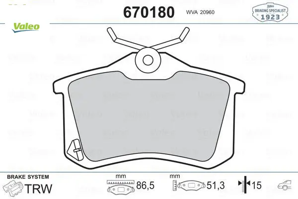 Arka fren balata renault clıo 05 kangoo 01 laguna 96 fluence 09 megane 96 cıtroen berlıngo 99 c2 c3 valeo 1h0698451f/ 4250.56/ wva20960