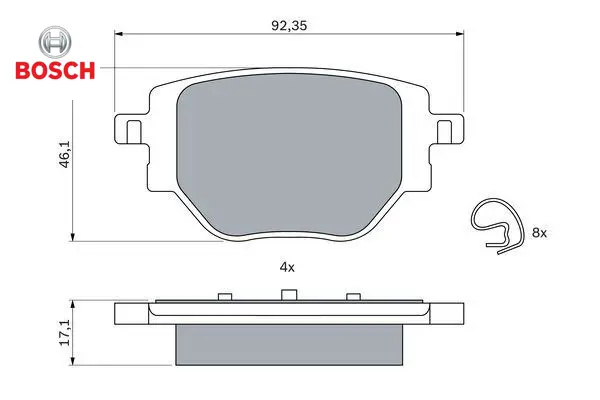 Arka fren balatası corsa f 19 c4 20 2008 19 208 19 249 mm bosch 1681449980/ 1664737180