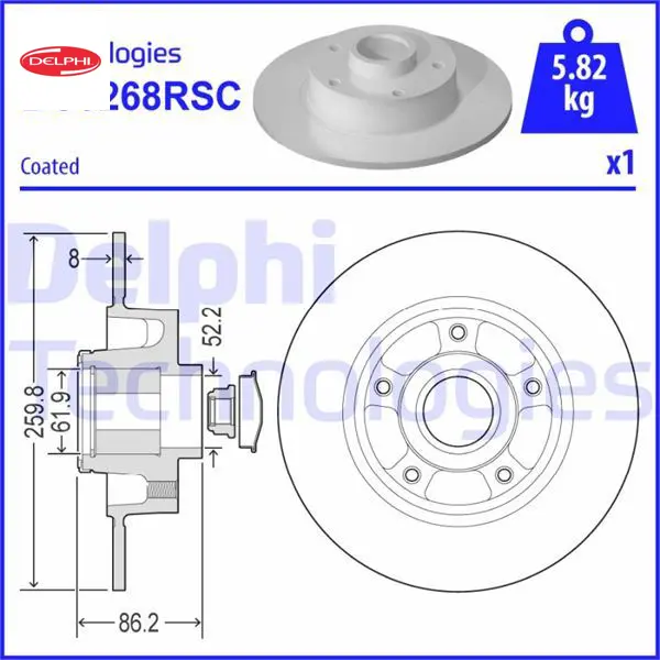 Arka fren diski megane ıv 15 dış cap: 260 mm k:86 mm 5 delik abs sensörlü rulmanlı delphı 432027412r/ 432000185r/ 432006609r