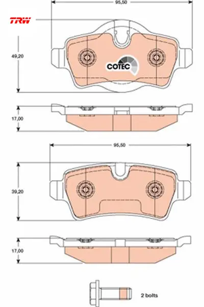 Fren balatası arka mını r55 r56 r57 r58 r59 trw 34216778327