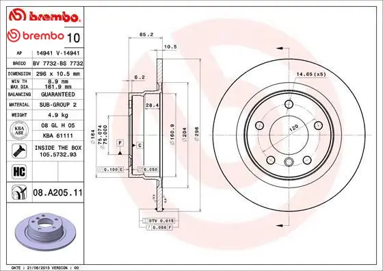 Üretici parti numarası: 08.A205.10
