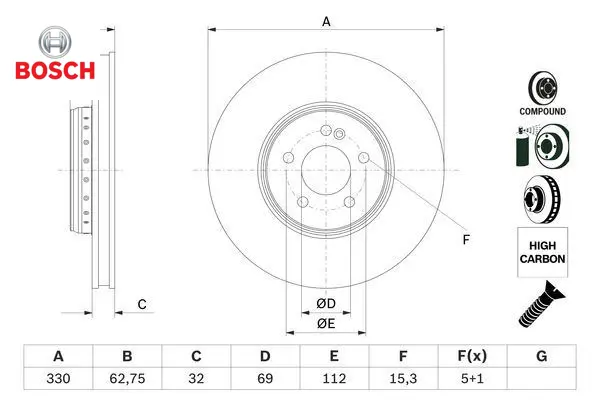 Fren dıskı on w205 s205 c205 a205 w213 s213 c238 a238 x253 c253 bosch a0004212712