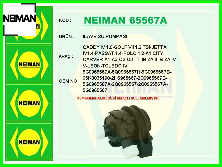 İlave su pompası caddy ıv 1.0-golf vıı 1.2 tsı-jetta ıv1.4-passat 1.4-polo 1.2-a1 cıty carver-a1-a3- neıman 5g0965567a/ 5q0965567h/ 5g0965567b/ 05