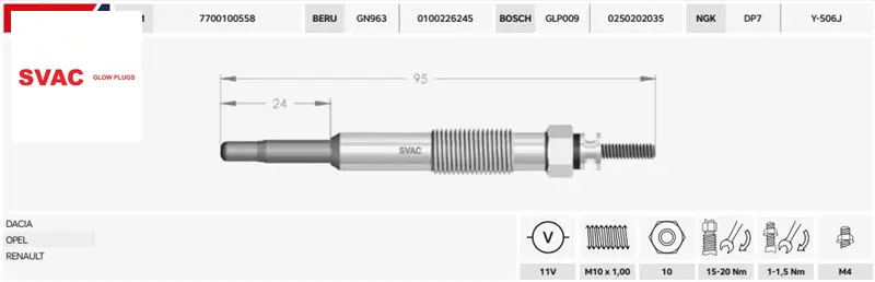 Isitma Bujisi Cıvatalı Clio-megane-kangoo 1.9d/11v/gx94/0100226245/8200423224/svac