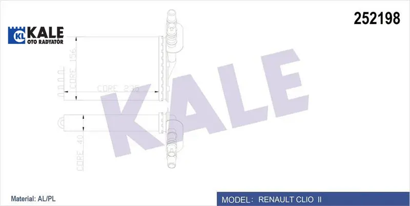 Kalorifer radyatörü clıo ıı 00 symbol ıı 08 234x158 2 sıra al pl sistem kale radyatör 7701044790/ 7701045552/ 7702258236