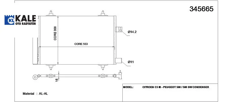 Klima radyatörü 407-508-c5 ııı 2.0hdı 16v 6455.Hv/ 6455.Jb/ 9683011280/ 1626267480