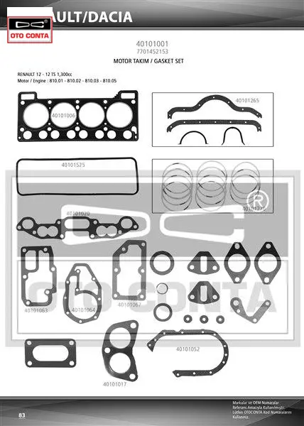 Motor takım contası r12 1300 skc 1.40mm otoconta 7701459631