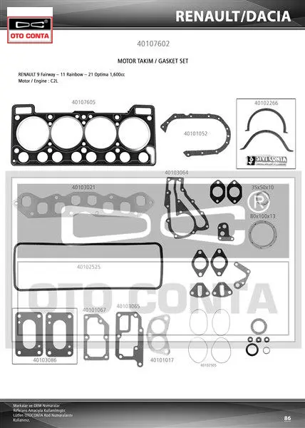 Motor takım contası r9 1.6 faırway-optima keçeli subap lastikli otoconta 7701465227