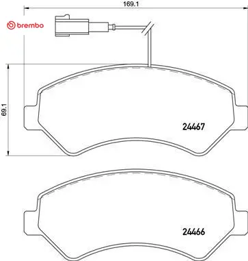 Ön balata boxer 06 jumper 06 ducato 06 169.1x69.1x19 brembo 1673603580/ 1607878980/ 77366022