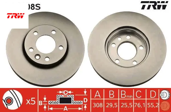 Ön fren aynası adet transporter t5 03 multıvan 03 touareg 02 crafter 06 308x29.5x5dlxhavalı xxx trw 7h0615301d