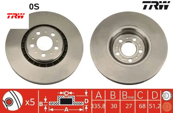 Ön fren aynası adet volvo xc90 2.5t-d5-t6 2002-2010 17 jant 336x30x5dlxhavalı 986479202-df4340s trw 31262489/ 306573015/ 306573013