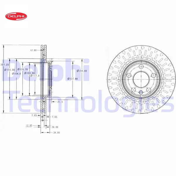 Ön fren aynası expert 96- jumpy 95- scudo 96- 1.6i-1.9d-2.0hdi havalı 257x20x5dl delphı 4249.L4/ 4246.H8/ 4246.H9/ 71738144