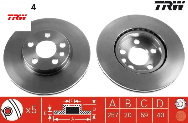 Ön fren aynası expert 96- jumpy 95- scudo 96- 1.6i-1.9d-2.0hdi havalı 257x20x5dl trw 4249.L4/ 4246.H8/ 4246.H9/ 71738144
