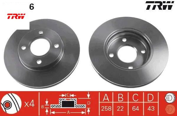 Ön fren aynası focus 98-04 fıesta 1.4tdci 96 fusıon 02 ka 03 2 03 258x22x4dlxhavalı 8213017 trw 98ab1125bd/ 4077455/ tamt1125fcs