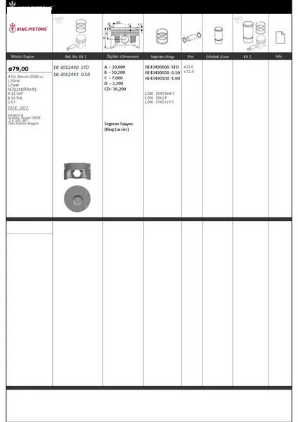 Stok Kodu: KINGPISTON 18-3012440