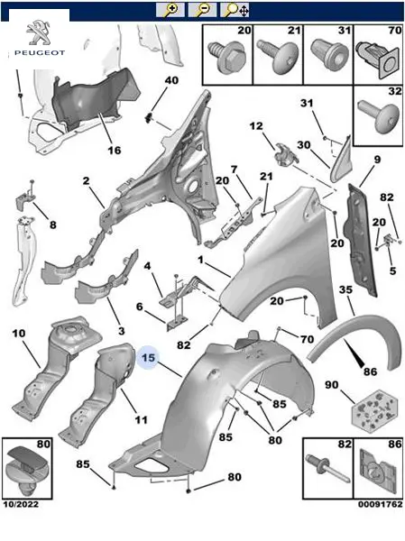 Sağ ön çamurluk davlumbazı 208 peugeot