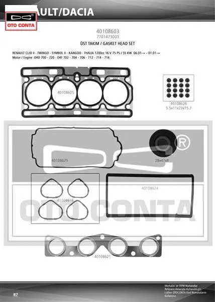 Üst takım conta skc li clıo ıı 98 kangoo 01 twıngo 1.2 16v d4f otoconta 7701473003